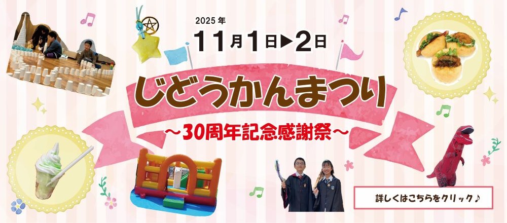 11月1日・2日は、じどうかんまつりを開催いたします。 こども自然王国30周年の感謝を込めて。そして、大切な誰かに感謝を伝える機会に。 遊び…
