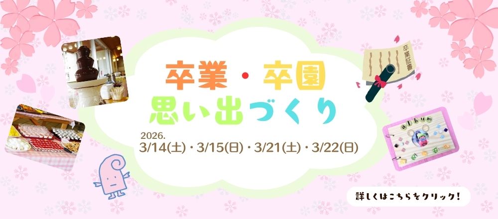 3月14日(土)・15日(日)・22日(土)・23日(日)は、 2025年度卒業・卒園をする方とそのご家族向けのランチバイキングや木工作体験…
