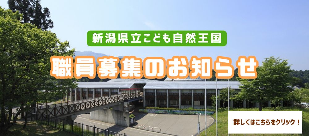 新潟県立こども自然王国では、一緒に働くスタッフを募集しています。 詳しい要項を掲載しますので、ぜひご覧ください。