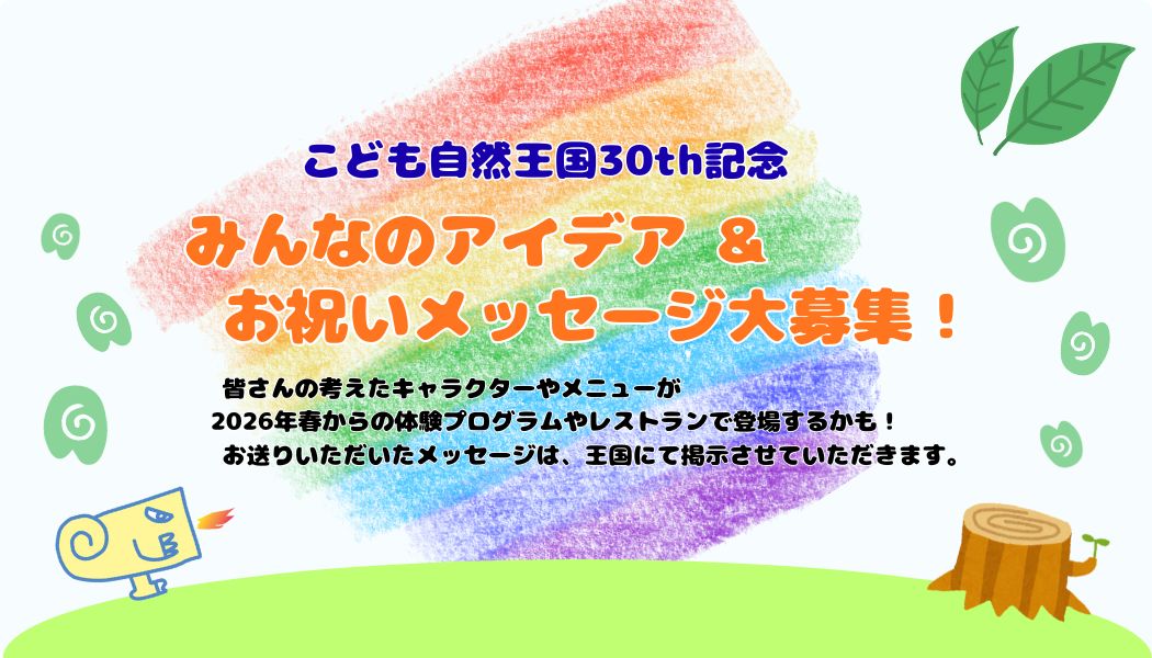 こども自然王国30周年を記念して、お祝いメッセージを募集します。