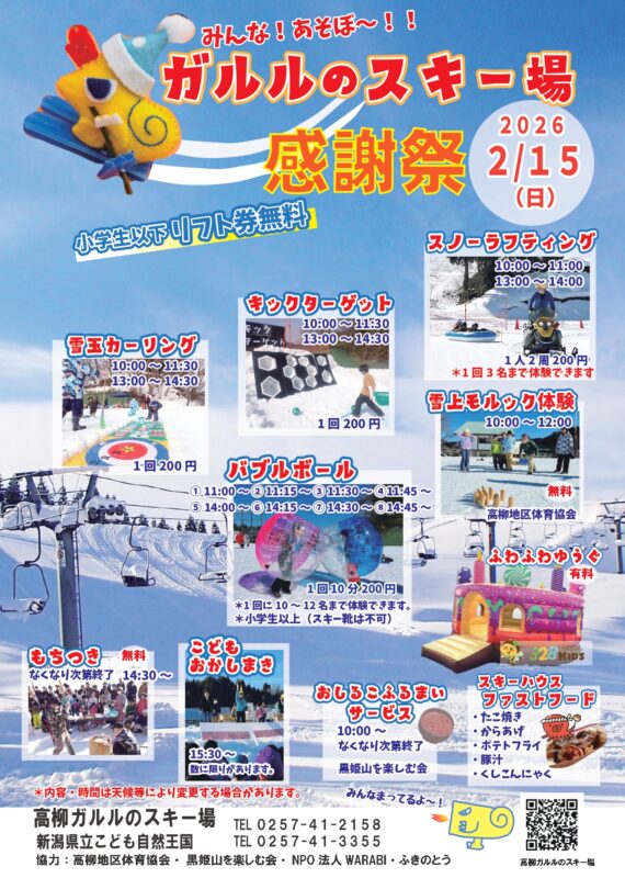 2月15日(日)にガルルのスキー場感謝祭を開催いたします。